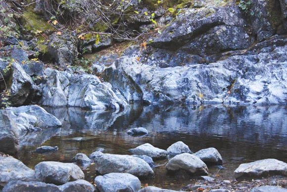 Pretty stuff. We were so busy with catching sunshine that we arrived at the creek after the sun had dipped behind the canyon wall. The water made for chilly air. But we loved the creek. And I played with the flash that was my birthday gift. We took one and only family photo. Using a tripod and a self-timer.