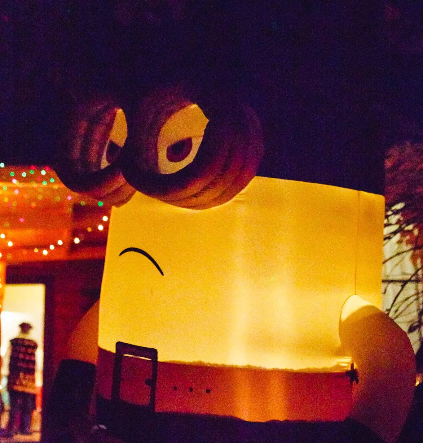 We visited the incredible displays in Nevada City. Trick-or-treating is only part of the reason to visit these neighborhoods. The Outside Inn's spooky garden walk ends with a Giant Minion. And a haunted house upped the display again by adding a sort-of spooky maze to the the yard, My kids never go into the haunted house (too scary).