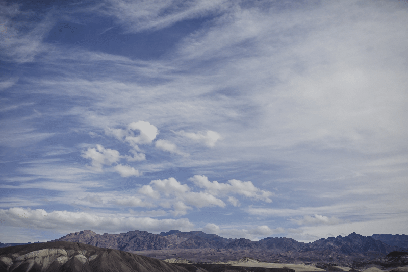 Anyway we woke into a lovely day. Scattered clouds from the weekend storm treated us to poetic skies. Everything about Death Valley feels rugged, and harsh, so those softly curving clouds looked especially feathered and special.